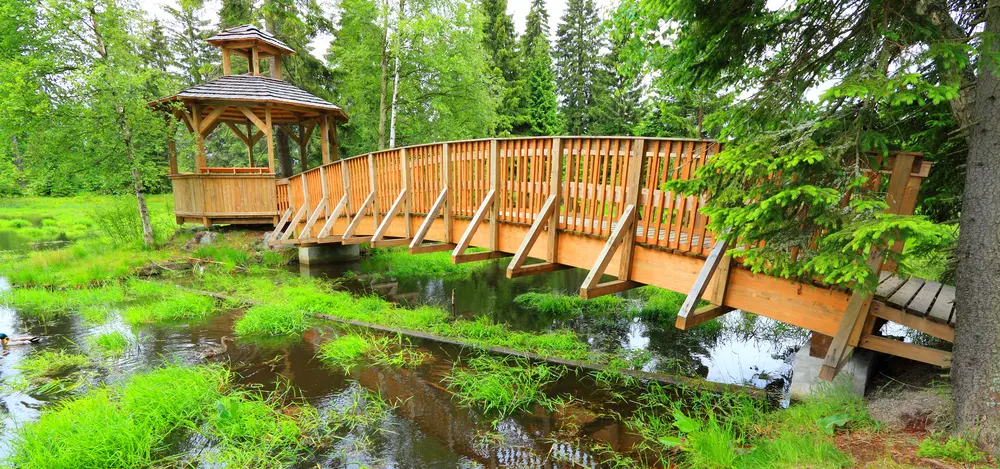 Jezerní slať s vyhlídkovou věží v národním parku Šumava