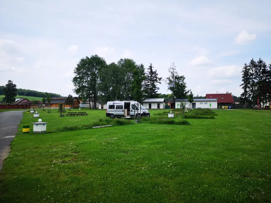 Jeho návštěva mě potěšila ještě více, než jsem si původně myslela. Po našem příjezdu na nás čekala úhledně posekaná tráva, opravdu čisté sociálky a klid. To bylo přesně to, co jsem potřebovala. Ne přeplněné restaurace, ne kemp s přeplněným bazénem lidí, ale přírodu, rybník, čistotu a jasně vymezený pozemek na kempování a opravdu čisté sociálky. Ideálně se zdrojem pivka pro Davího, případně limonády. A přesně tohle nás tady čekalo. Jaká to byla oáza pro duši!