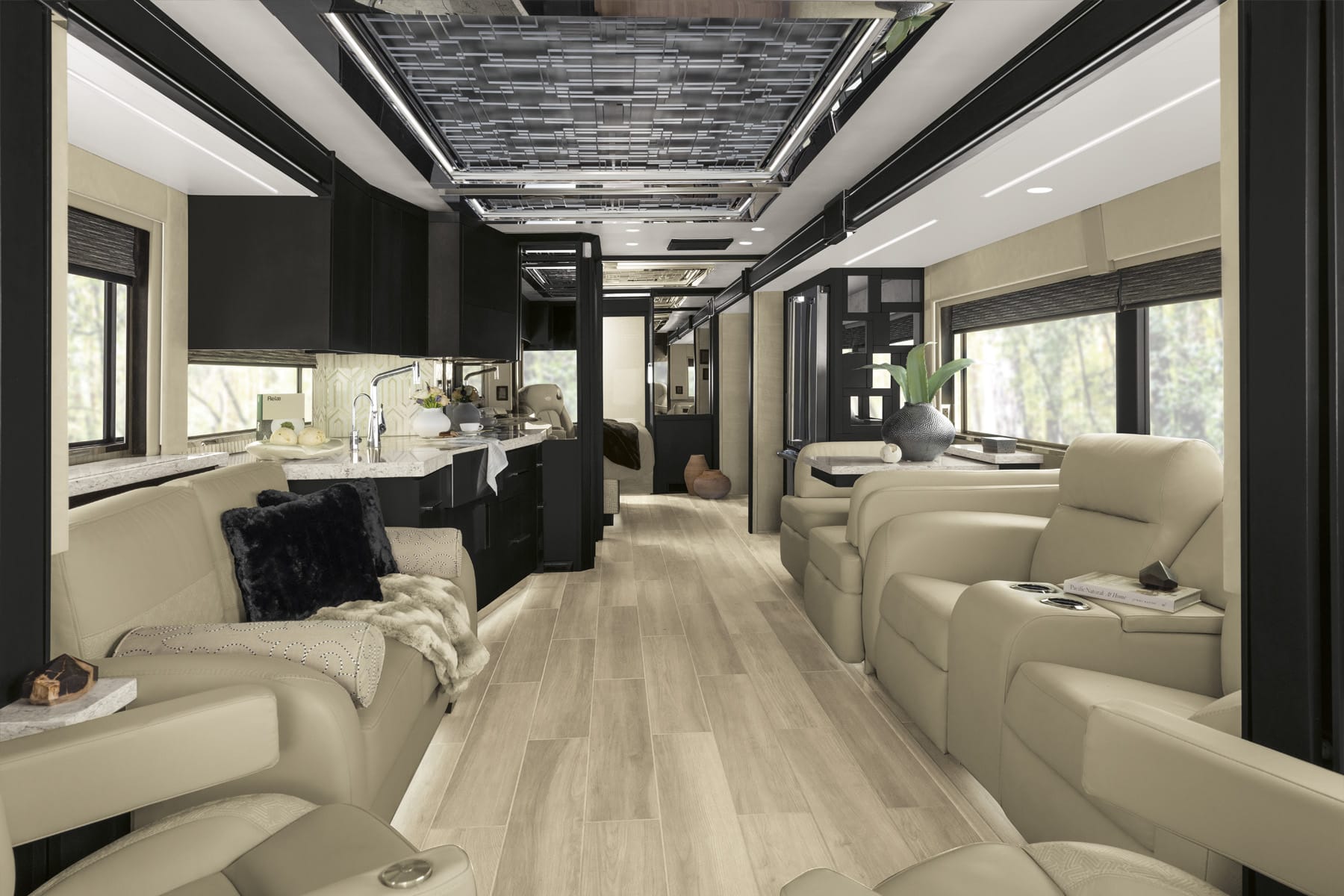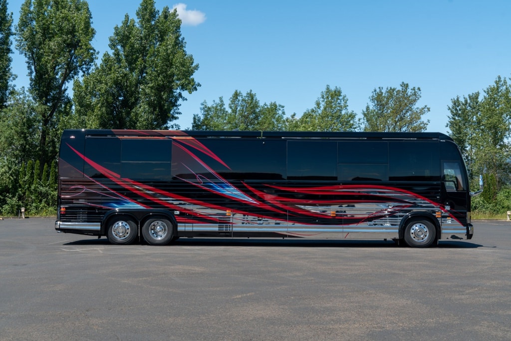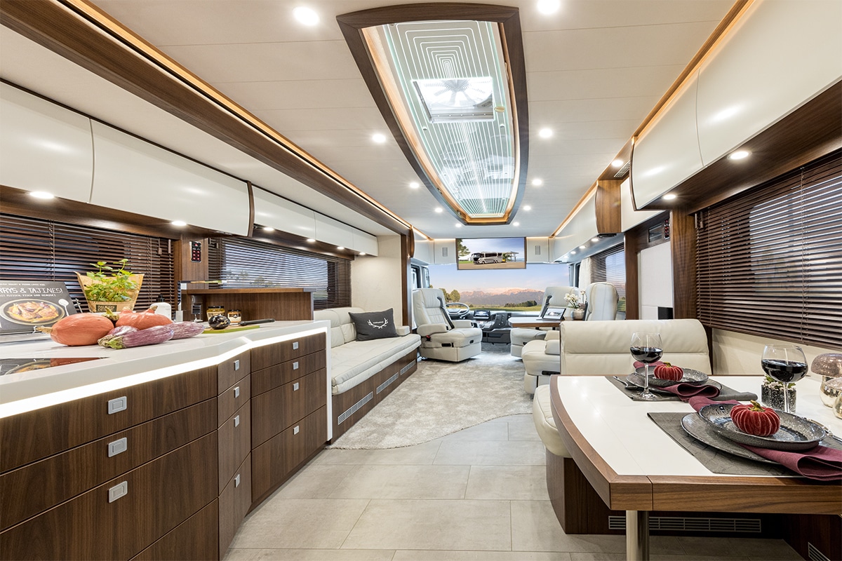 Tento elegantní „autobus“ je vlajkovou lodí firmy a nabízí vše, co si milionář může přát. S počáteční cenou 1,54 milionu USD lze design plně přizpůsobit potřebám každého zájemce. K dispozici je šest možností půdorysu a výběr z osmi povrchových úprav exteriéru a interiéru. Samozřejmě nechybí možnost si splnit další přání. Za ta si však musíte připlatit. 3D prohlídku si spustíte tady.