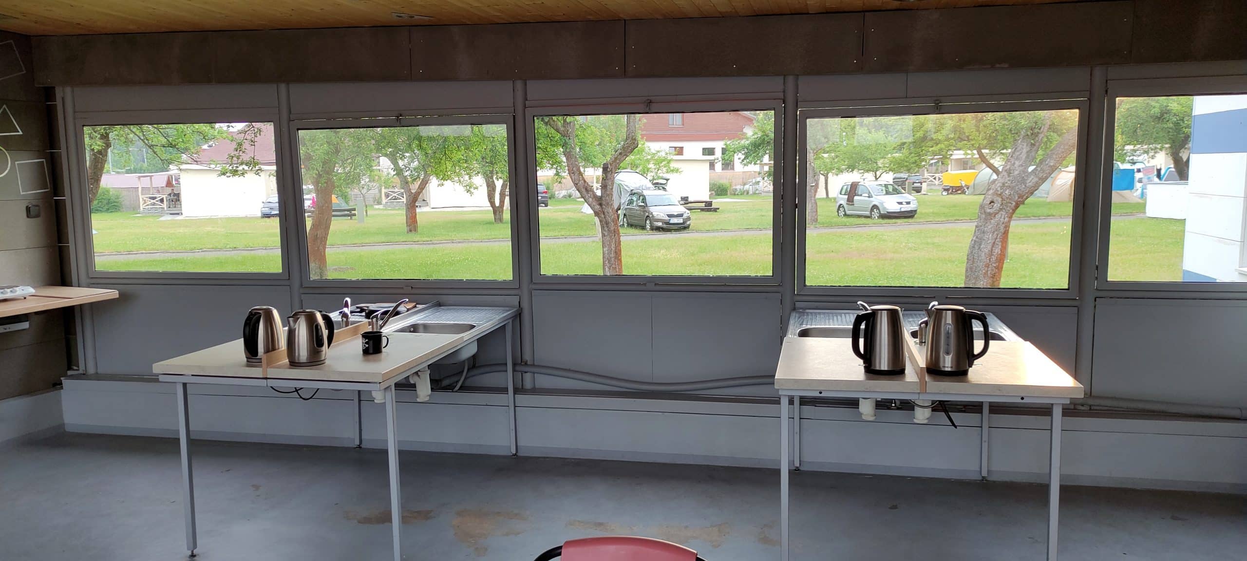Proč patří tento kemp k nejlépe hodnoceným a v roce 2020 byl dokonce vítězem celé ankety? To nejlépe posoudíte sami na místě. Nás oslovilo jak samotné prostředí, tak i perfektní zázemí a služby, které tento resort poskytuje. Například kuchyňka, která je přístupná všem ubytovaným. Kompletně vybavená, od vařičů, přes mikrovlnné trouby, doplňkové nádobí, toustovač a další. Kuchyňka je perfektně umístěná poblíž stanové louky, a tak jsme nemuseli se špinavým nádobím nikam daleko.