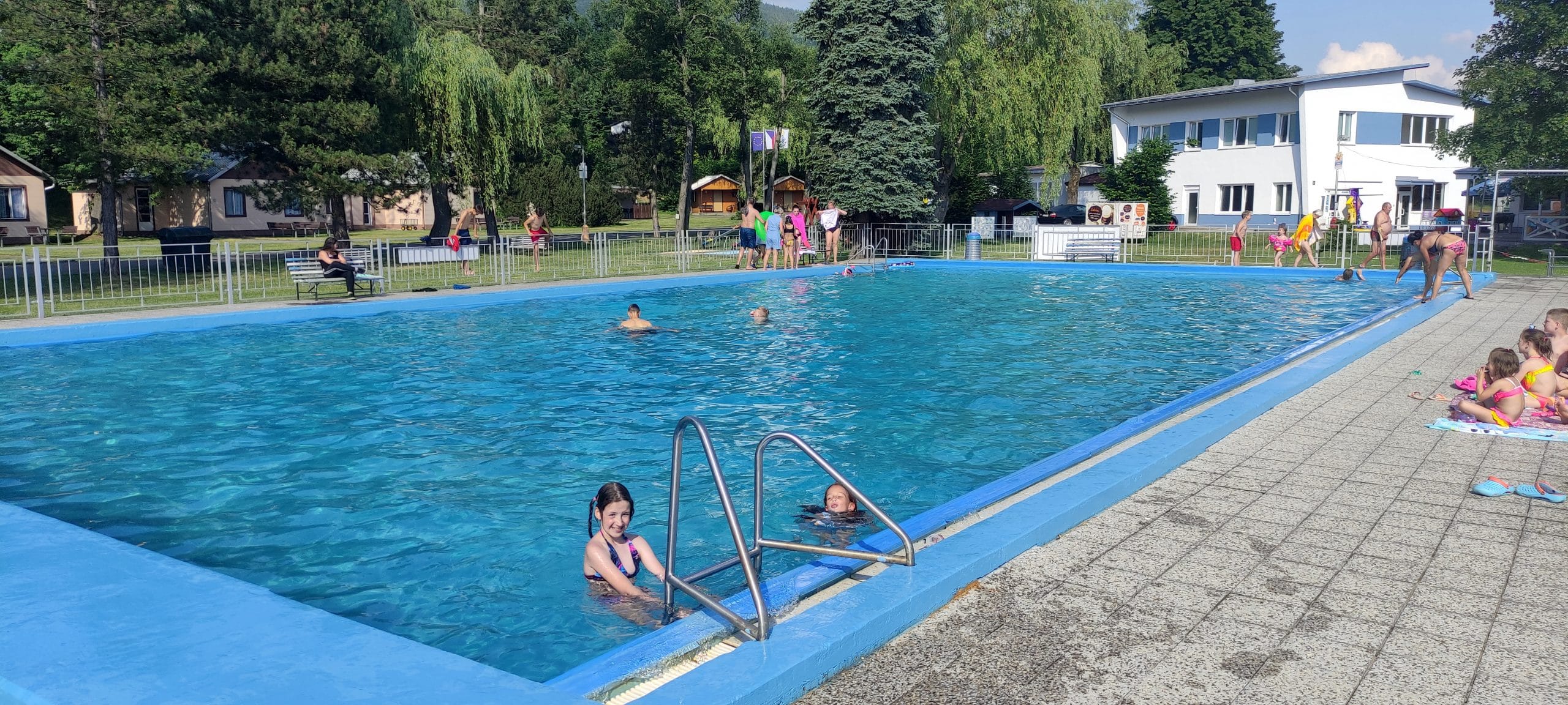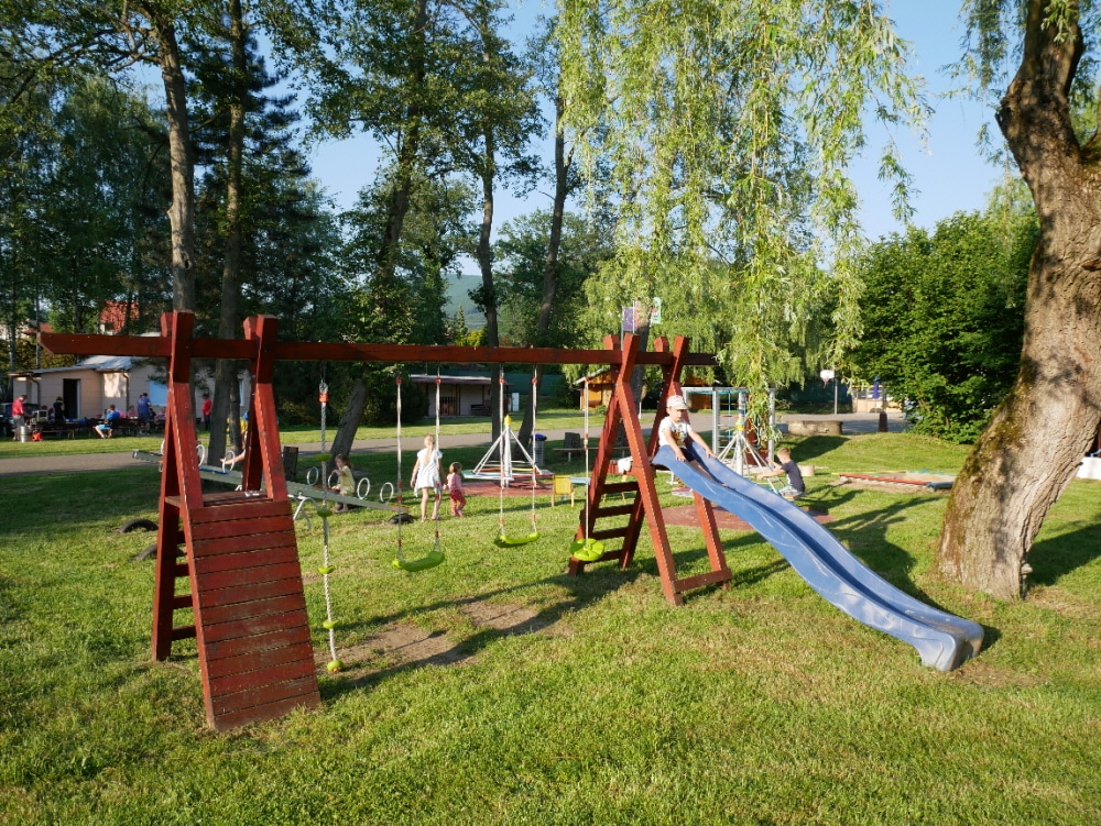 Pokud se vám zrovna nechce něco kuchtit, tak můžete využít restauraci v centrální části kempu, případně si sem jen odskočit pro jedno točené či posedět na terase. Po celý den je zde nabídka hotových jídel a v případně chladnějšího počasí lze využít k posezení vnitřní prostory restaurace. I zde, stejně tak jako v celém kempu, je dostatečné pokrytí signálem WIFI. Vedle restaurace se také nachází trampolínové centrum pro děti i dospělé, které je v provozu o prázdninách. Bazén je pro ubytované zdarma, a tak se zde lze v létě dokonale osvěžit. U bazénu je zároveň umístěna webkamera. Děti jistě ocení i dětské hřiště, opět v bezprostřední blízkosti bazénu a rodiče tak mohou posedět na terase restaurace a přitom mít o dětech dokonalý přehled.
